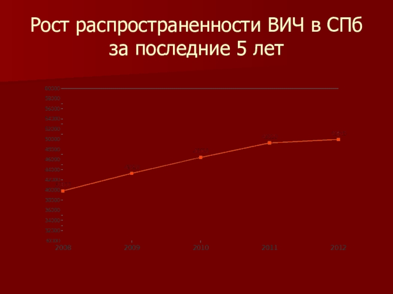 Слайд 4Рост распространенности ВИЧ в СПб за последние 5 лет
