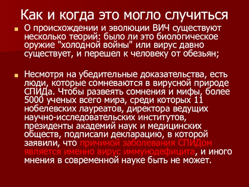 О происхождении и эволюции ВИЧ существуют