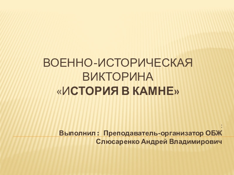 Военно-историческая викторина «история в камне»:Выполнил :  Преподаватель-организатор ОБЖСлюсаренко Андрей Владимирович
