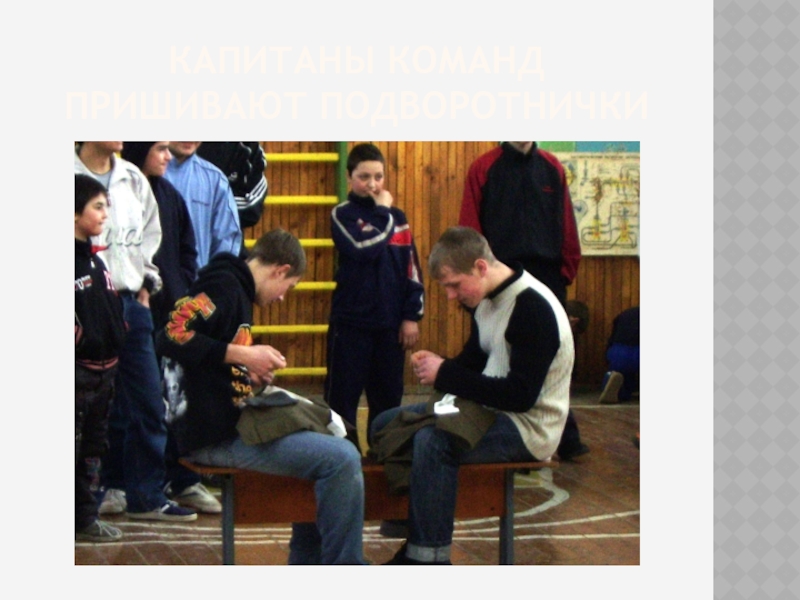 Слайд 11Капитаны команд пришивают подворотнички