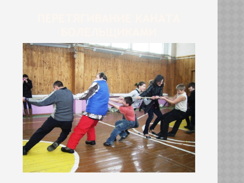 Слайд 14Перетягивание каната болельщиками