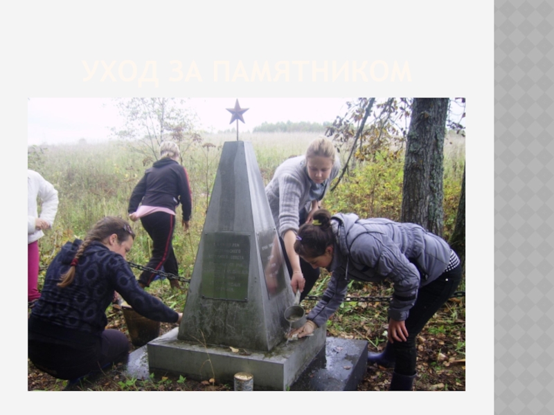 Слайд 23Уход за памятником