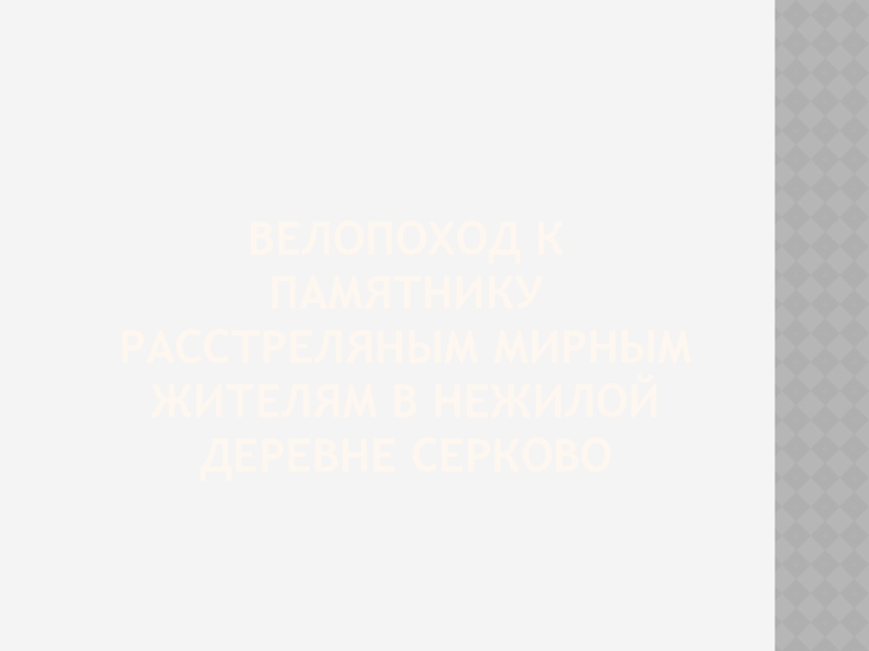 Слайд 20Велопоход к памятнику расстреляным мирным жителям в нежилой деревне серково