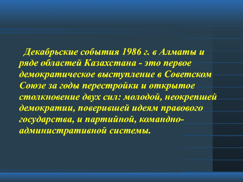 Слайд 9 Декабрьские события 1986 г. в Алматы и ряде областей Казахстана