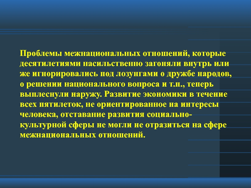 Слайд 11Проблемы межнациональных отношений, которые десятилетиями насильственно загоняли внутрь или же игнорировались