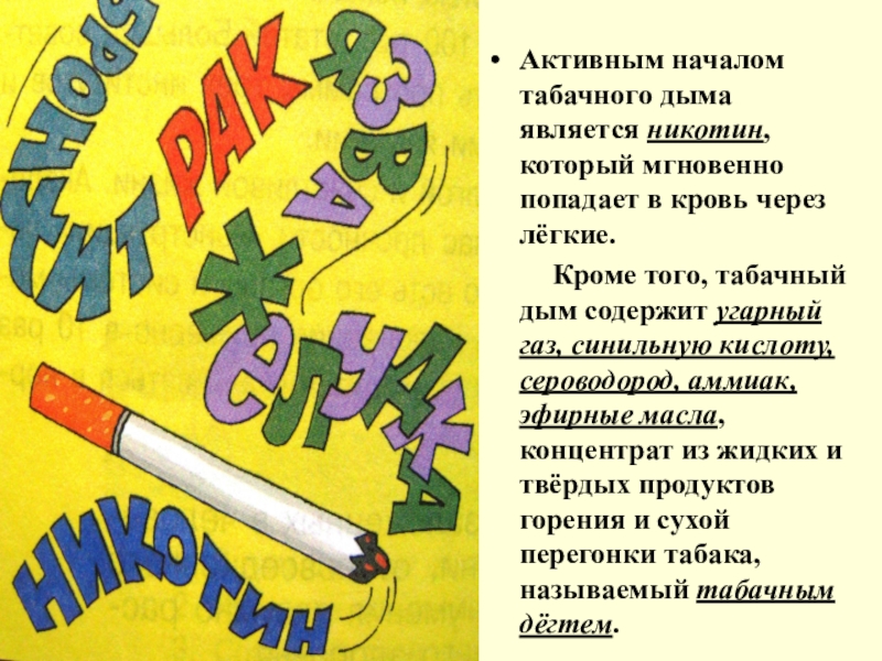 Активным началом табачного дыма является никотин, который мгновенно попадает в кровь