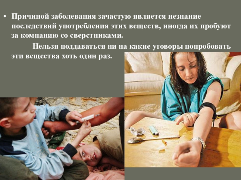 Причиной заболевания зачастую является незнание последствий употребления этих веществ, иногда их