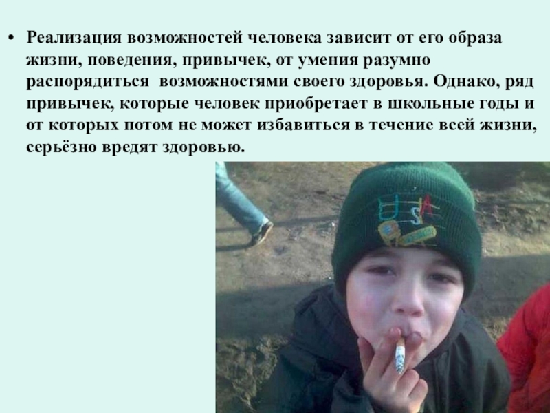 Реализация возможностей человека зависит от его образа жизни, поведения, привычек, от