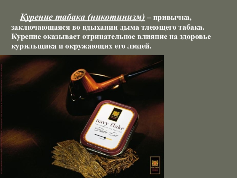 во вдыхании дыма тлеющего табака. Курение оказывает отрицательное влияние на здоровье курильщика и окружающих его людей.