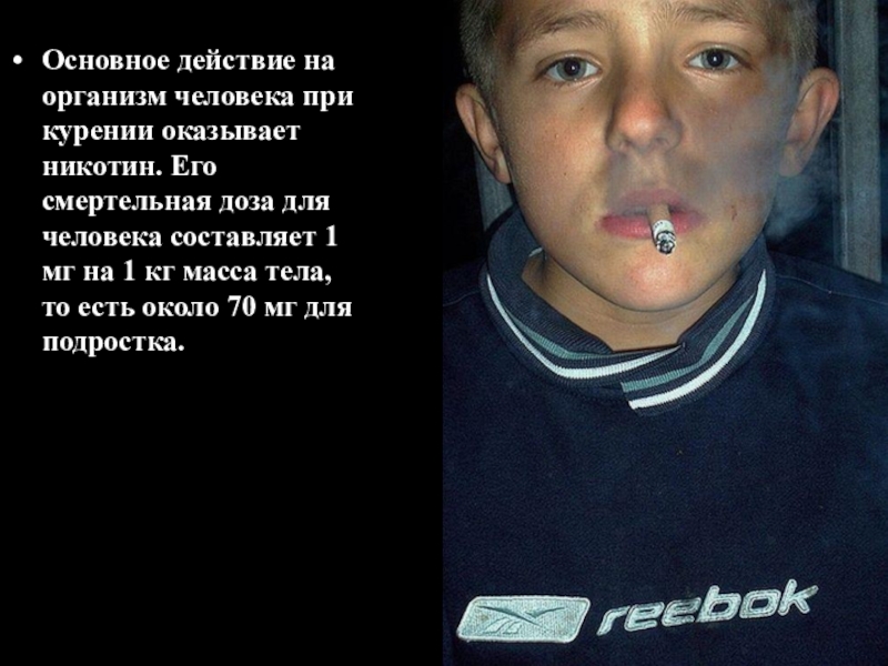 Основное действие на организм человека при курении оказывает никотин. Его смертельная
