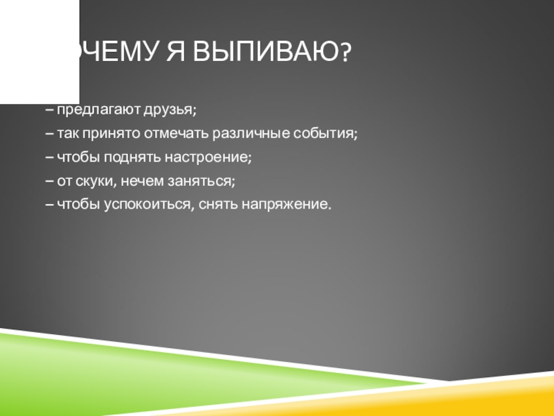 Слайд 5ПОЧЕМУ Я ВЫПИВАЮ?