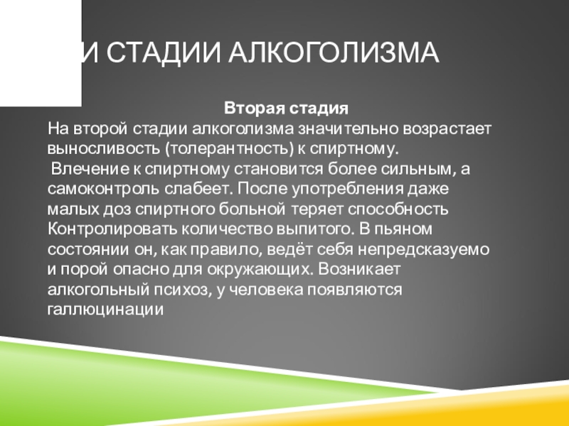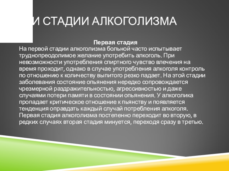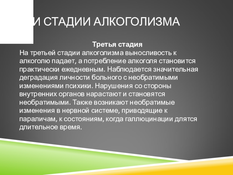 Слайд 8ТРИ СТАДИИ АЛКОГОЛИЗМА