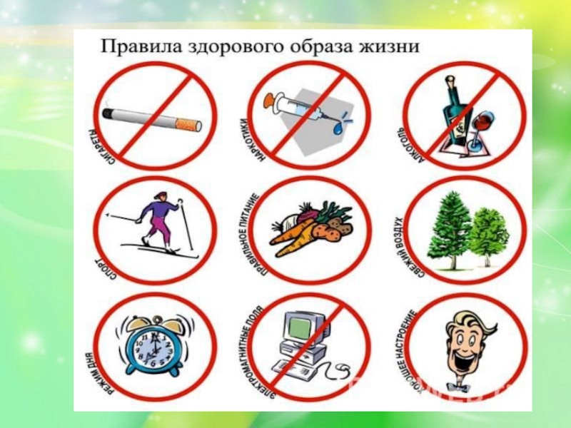 Слайд 12Немалую роль в сохранении здоровья играет борьба с курением, алкоголем, наркоманией.
