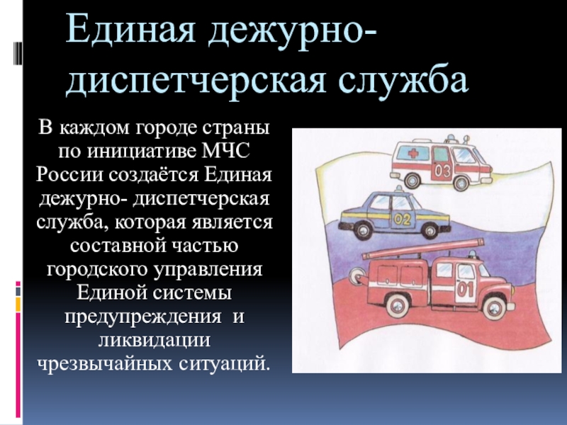 Единая дежурно- диспетчерская служба, которая является составной частью городского управления Единой системы предупреждения и ликвидации чрезвычайных ситуаций.