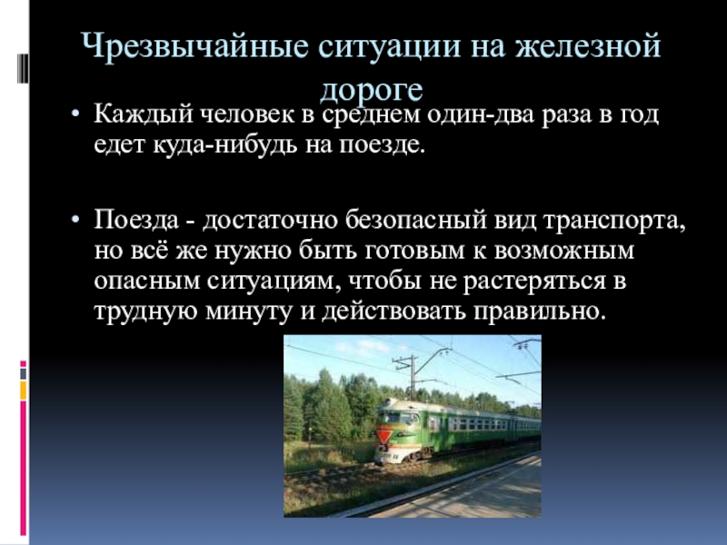 Поезда - достаточно безопасный вид транспорта, но всё же нужно быть готовым к возможным опасным ситуациям, чтобы не растеряться в трудную минуту и действовать правильно.