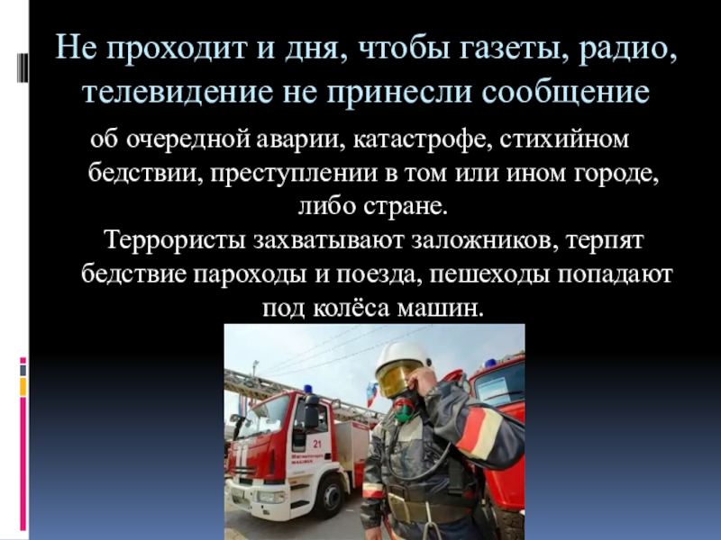 Слайд 9Не проходит и дня, чтобы газеты, радио, телевидение не принесли сообщение