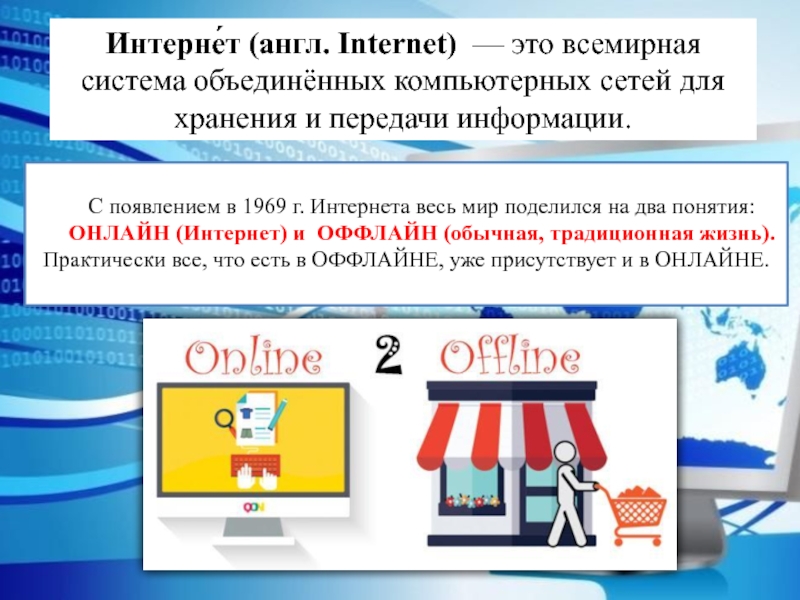 ОНЛАЙН (Интернет) и ОФФЛАЙН (обычная, традиционная жизнь).
