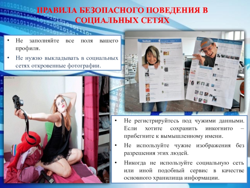 Регистрируясь на сайтах, не указывайте личную информацию, которую могут все увидеть. Не нужно, чтобы незнакомые люди знали, как вы выглядите и где учитесь.