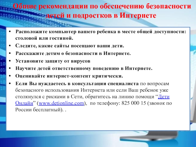 Общие рекомендации по обеспечению безопасности детей и подростков в Интернете