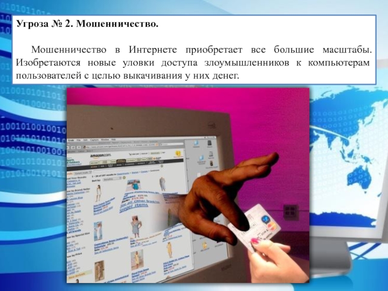 Слайд 5Угроза № 2. Мошенничество.