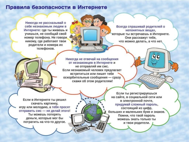 Всегда спрашивай родителей или учителя о незнакомых вещах, о которых узнаешь в Интернете. Они расскажут, что безопасно делать, а что нет.