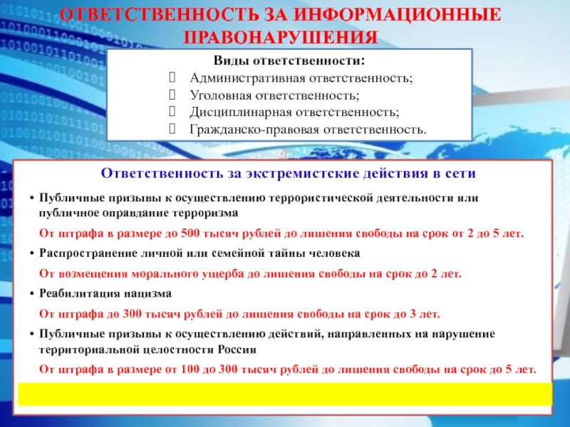Слайд 25ОТВЕТСТВЕННОСТЬ ЗА ИНФОРМАЦИОННЫЕ ПРАВОНАРУШЕНИЯ