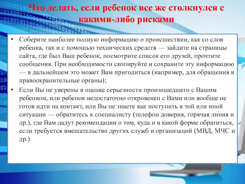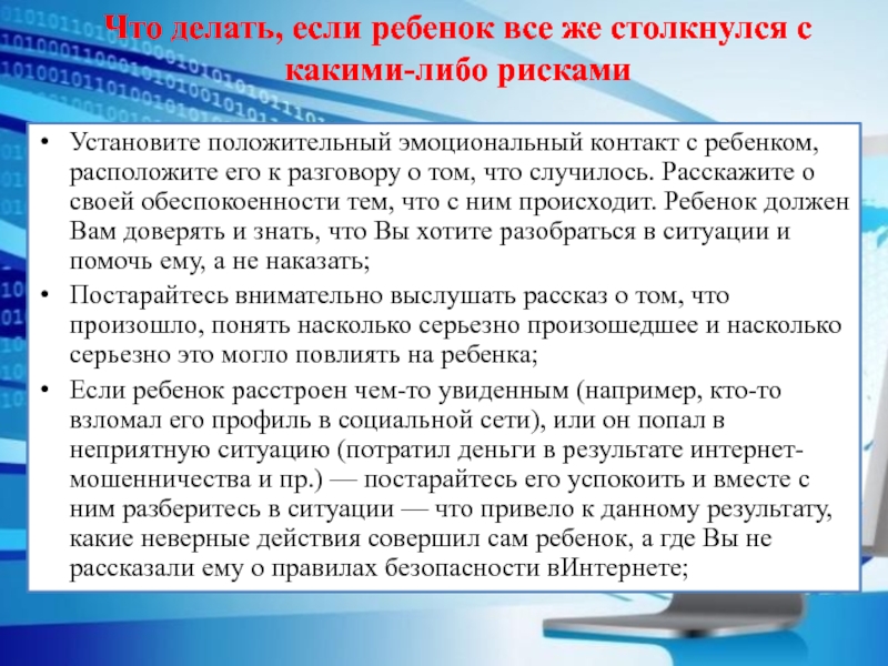 Что делать, если ребенок все же столкнулся с какими-либо рисками