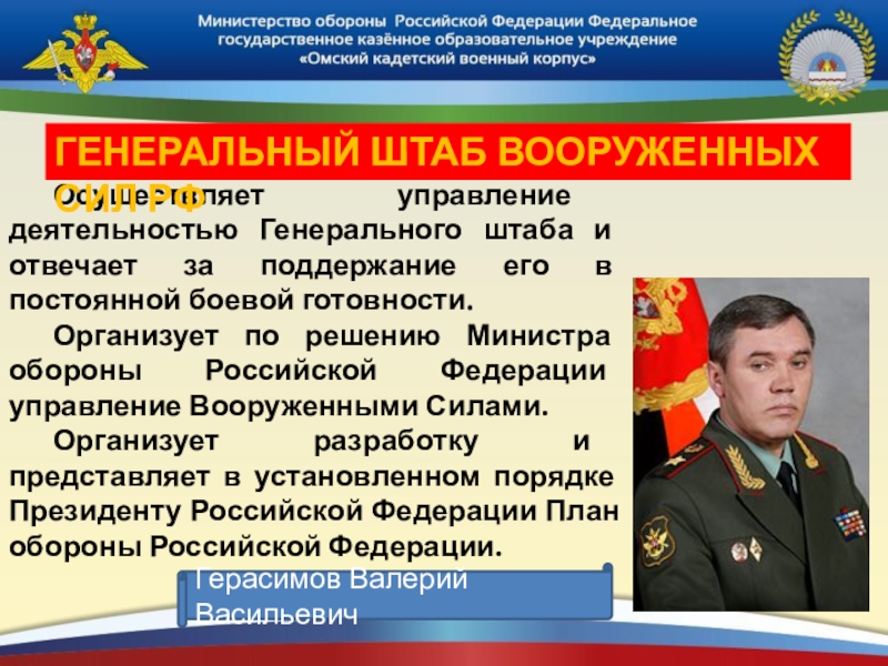 ГЕНЕРАЛЬНЫЙ ШТАБ ВООРУЖЕННЫХ СИЛ РФ