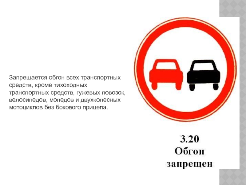 Слайд 25Запрещается обгон всех транспортных средств, кроме тихоходных транспортных средств, гужевых повозок,