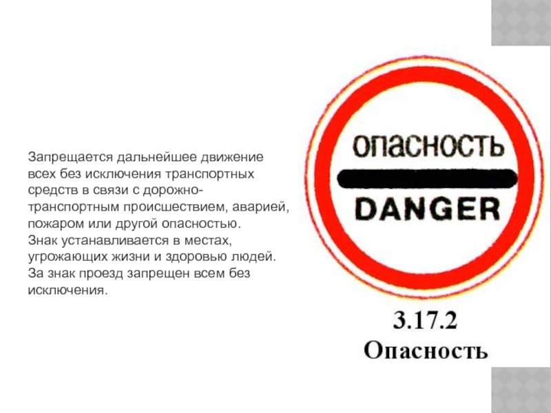 Знак устанавливается в местах, угрожающих жизни и здоровью людей.