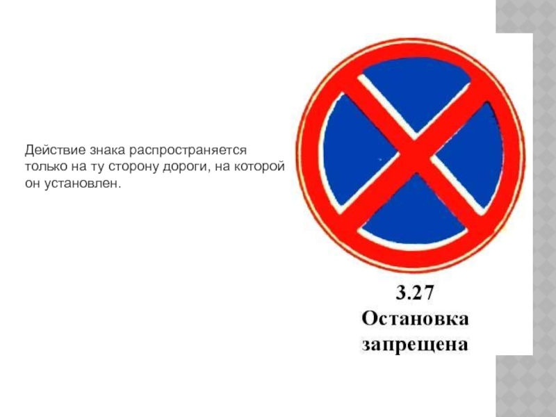 Слайд 32Действие знака распространяется только на ту сторону дороги, на которой он