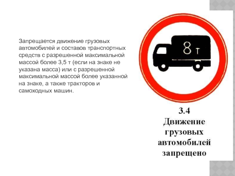 массой более 3,5 т (если на знаке не указана масса) или с разрешенной максимальной массой более указанной на знаке, а также тракторов и самоходных машин.