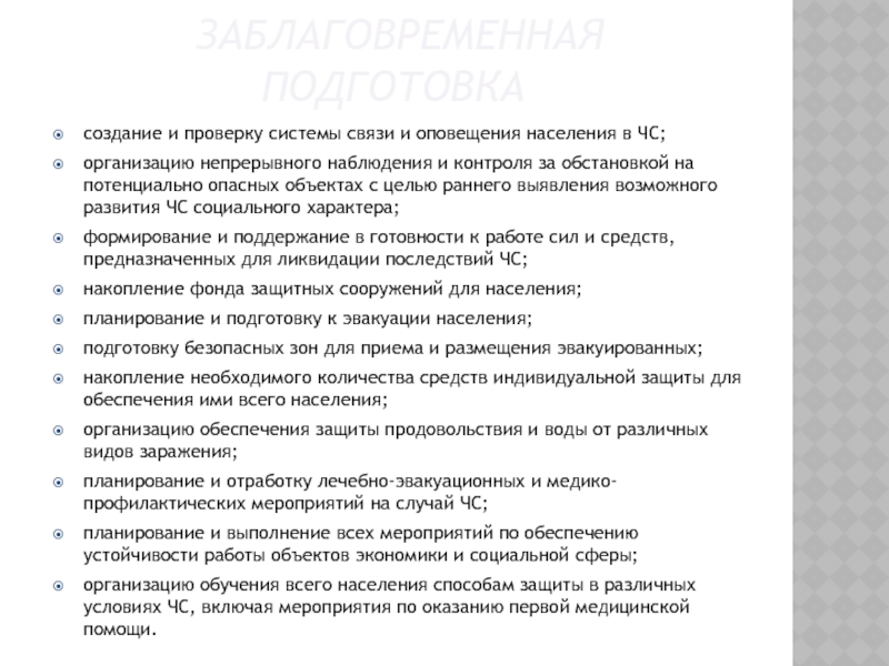 обеспечение готовности к действиям органов управления, сил и средств, предназначенных для предупреждения и ликвидации ЧС;