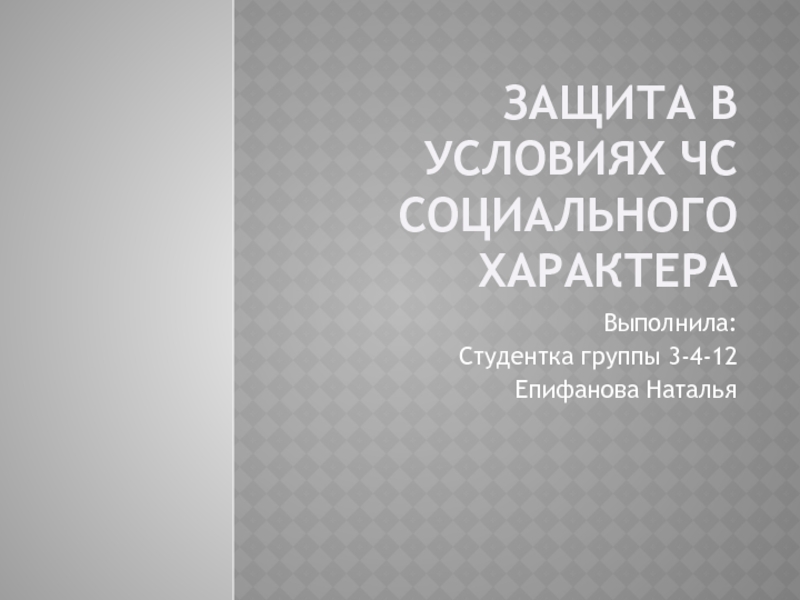 Слайд 12Защита населения и территорий в чрезвычайных ситуациях социального характера, т. е. связанных