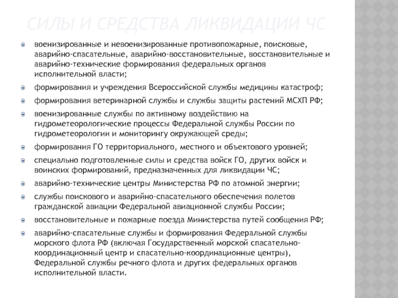 специально подготовленные силы и средства войск ГО, других войск и воинских формирований, предназначенных для ликвидации ЧС;