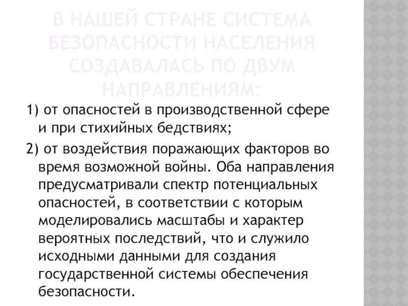 Слайд 4В нашей стране система безопасности населения создавалась по двум направлениям: