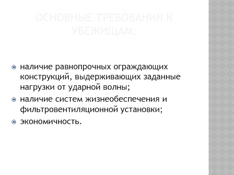 наличие равнопрочных ограждающих конструкций, выдерживающих заданные нагрузки от