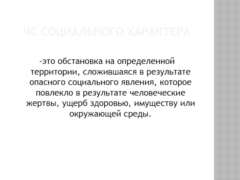 результате опасного социального явления, которое повлекло в результате человеческие жертвы, ущерб здоровью, имуществу или окружающей среды.
