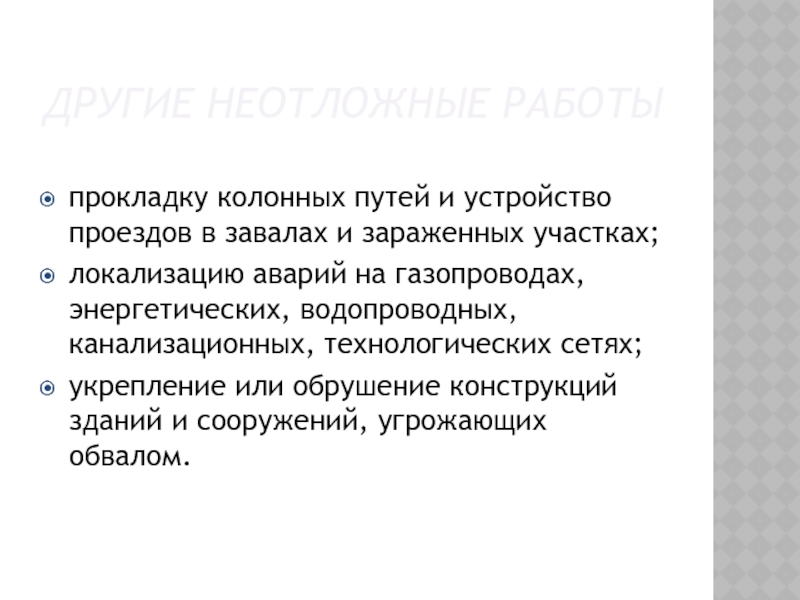 укрепление или обрушение конструкций зданий и сооружений, угрожающих обвалом.