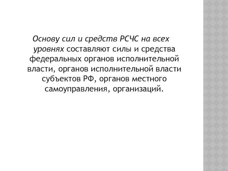 Основу сил и средств РСЧС на всех уровнях составляют силы и средства
