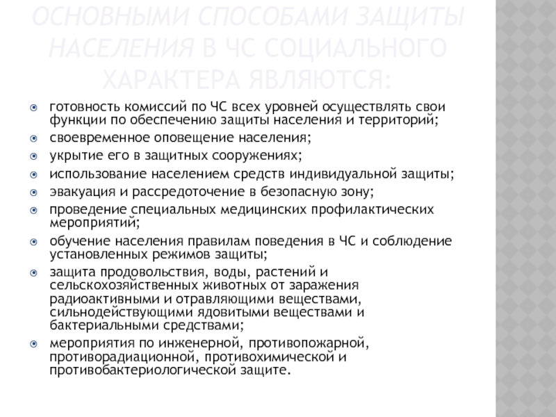 Слайд 15Основными способами защиты населения в ЧС социального характера являются: