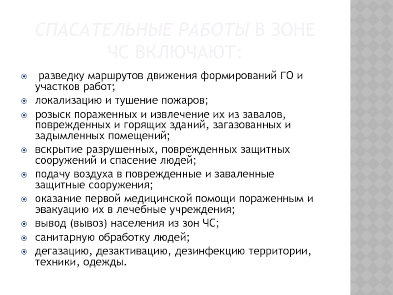 Слайд 26Спасательные работы в зоне ЧС включают: