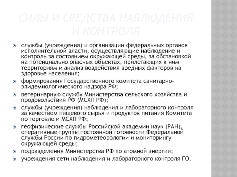 исполнительной власти, осуществляющие наблюдение и контроль за состоянием окружающей среды, за обстановкой на потенциально опасных объектах, прилегающих к ним территориям и анализ воздействия вредных факторов на здоровье населения;