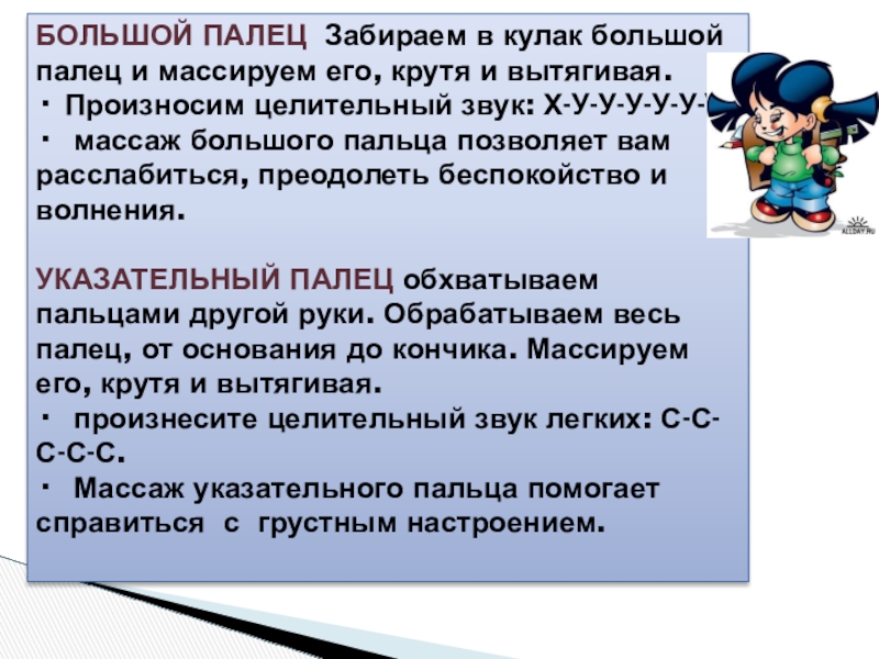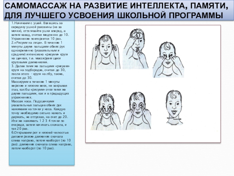 САМОМАССАЖ НА РАЗВИТИЕ ИНТЕЛЛЕКТА, ПАМЯТИ, ДЛЯ ЛУЧШЕГО УСВОЕНИЯ ШКОЛЬНОЙ ПРОГРАММЫ