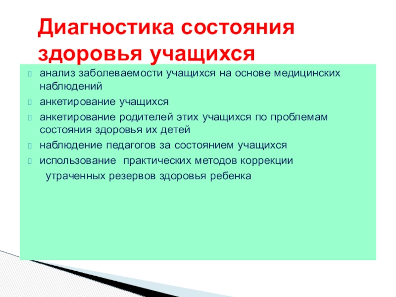 Диагностика состояния здоровья учащихся