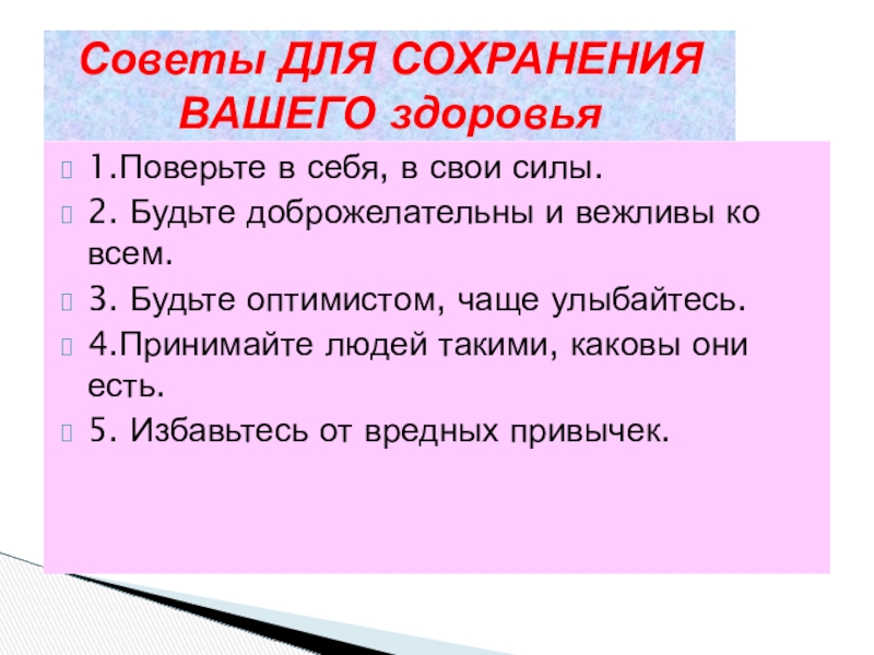 Советы ДЛЯ СОХРАНЕНИЯ ВАШЕГО здоровья