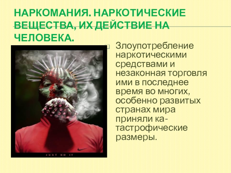 Слайд 23Наркомания. Наркотические вещества, их действие на человека.
