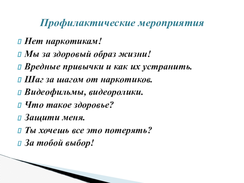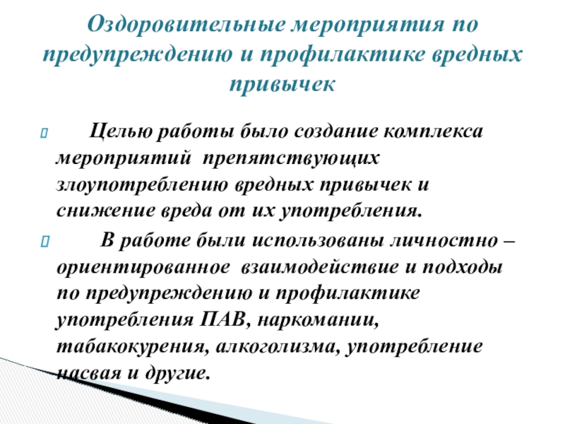 Оздоровительные мероприятия по предупреждению и профилактике вредных привычек