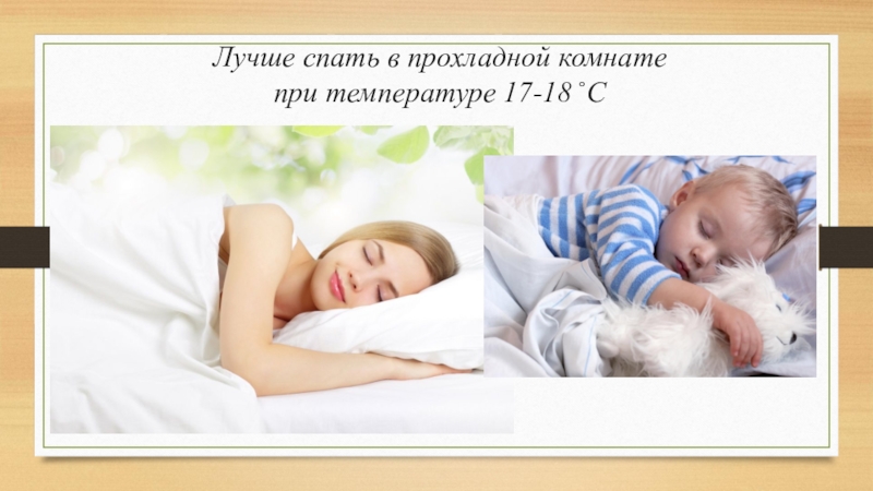 Слайд 9Лучше спать в прохладной комнате при температуре 17-18 ̊ С