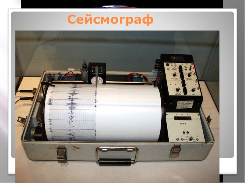 Слайд 25Сейсмо́граф — специальный измерительный прибор, который используется в сейсмологии для обнаружения и регистрации всех типов сейсмических